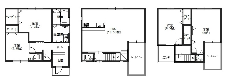 間取り詳細(帖) | LDK18.55/洋室7.3/洋室4.6/洋室6.5/洋室8.0 | ||
