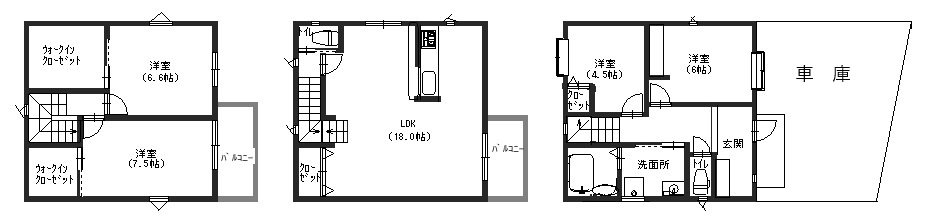 間取り詳細(帖) | LDK18/洋室6.6/洋室7.5/洋室4.5/洋室6.0 | ||