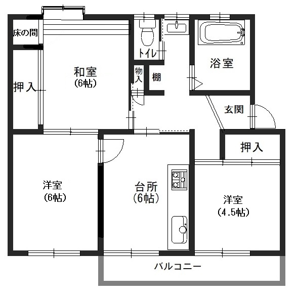 その他設備電気、ガス(都市)、水道、キッチン、バス、トイレ、洗面台、押入、物入、バルコニー